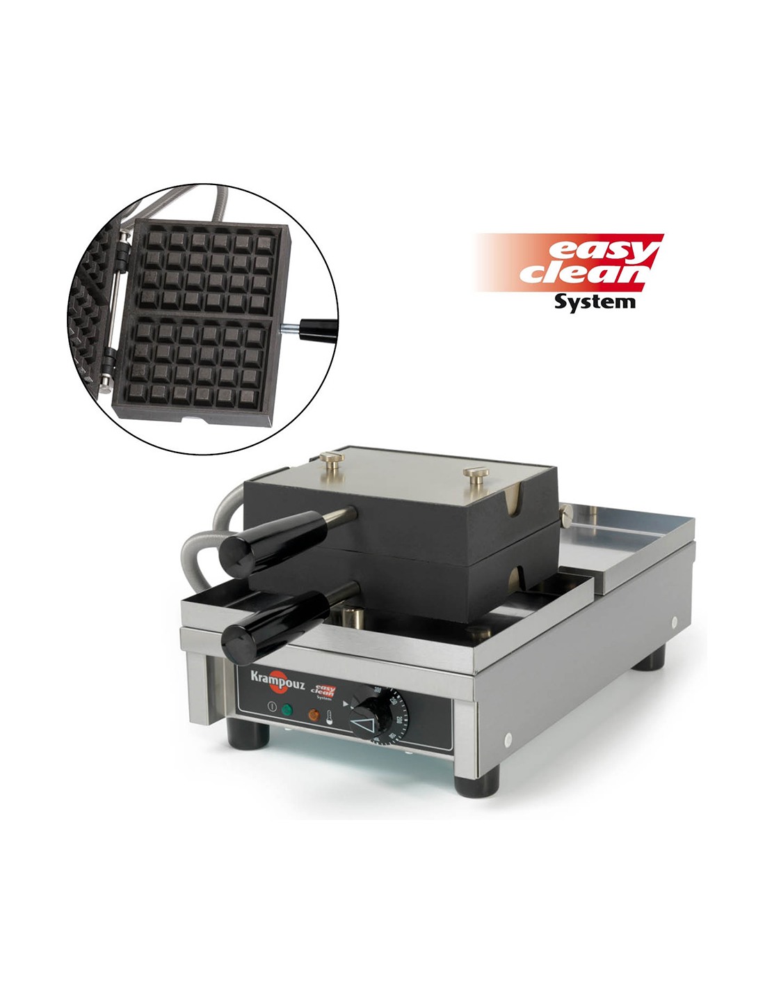 Le gaufrier professionnel bénéficie du système Easy Clean, qui permet le démontage rapide des fers pour un nettoyage au lave-vaisselle. Il est équipé du Pack Résistance pour une parfaite répartition de la chauffe sur les fers en fonte.